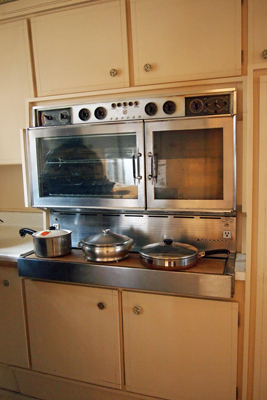 普通、オーブンはガスや電気テーブルの下にあるのですが、これは珍しく上にあるタイプ。