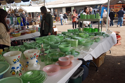 このマーケットには上の写真のような仮設テントのブースと、常設の掘っ建て小屋のようなブースがあるのですが、常設のブースの方は少し入れ替わりがあったようで、これまで結構パイレックスとかファイヤーキングを買っていたブース(ここで確か、レッドバロンも見つけたんだっけ)がなんとなくなってしまってました。