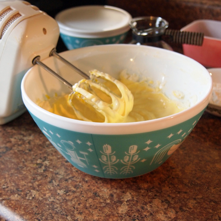 傷も気にせず使えるので(壊れても今なら手に入るし)、こんな風に電動のハンドミキサーも使っちゃいます。