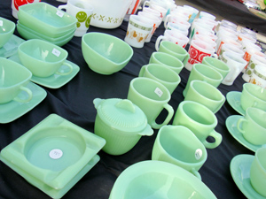 ケースの中にはファイヤーキングのお皿がたくさん積み重ねられ、カナダではなかなかお目にかかれないものもあったり。