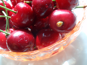 大きな甘いチェリーを家族で黙々と摘み、こんなにたくさん採れました。