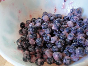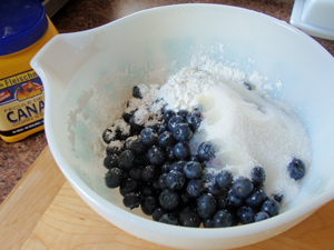洗ったブルーベリーにレモン汁を少々まぶし、分量の砂糖とコーンスターチと混ぜるだけ。