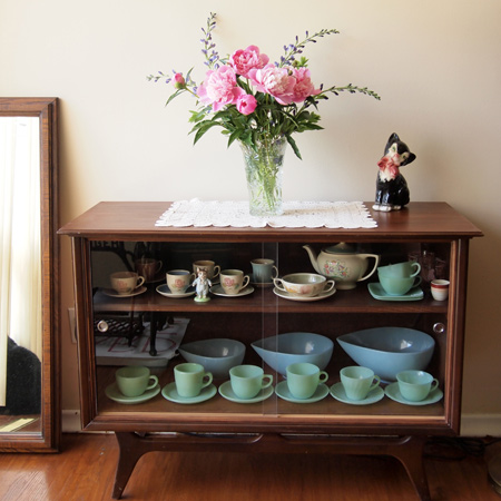 ここのところ、ラッキーにもよい値段で家具が手に入り、これは自宅用にちょうどいいとそのうちの一つを早速きれいに磨き上げ、自分のコレクションを並べてみました。