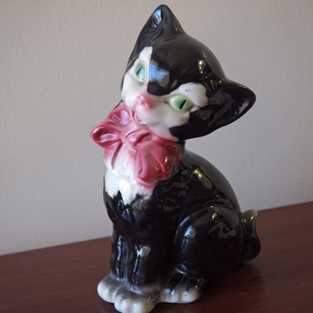 それは、キャビネット上に飾ってある、猫の置物です。