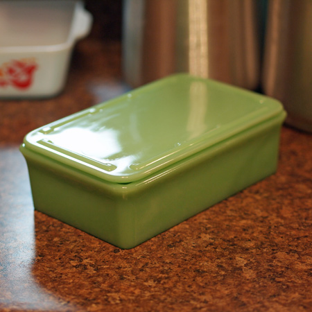 こちらもそうで、ずっと前にアンティークショウでまるでジャンクのように扱われ(同じテーブルの周りの商品がまさにジャンクでした)、格安で手に入れたMcKeeのジェダイトカラーのレフリジレーターケース。